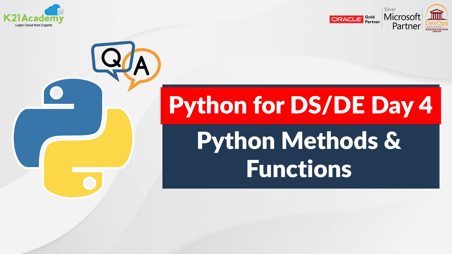 This blog will cover the Q&As of Python for Data Science (AI/ML) and Data Engineer Training covering Python Methods and Functions Q&A: Day 4 Live Session Review This blog will help you to clear your concepts with Methods and Functions.