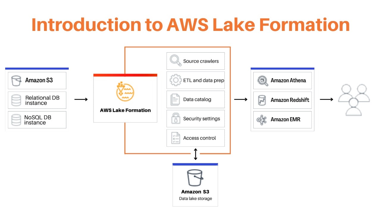 AWS Lake Formation is a fully managed service that simplifies the creation, security, and management of data lakes. Many of the complex manual tasks necessary to construct data lakes are simplified and automated by Lake Formation. These processes include gathering, cleansing, transferring, and cataloguing data, as well as securely delivering that data for analytics and machine learning.