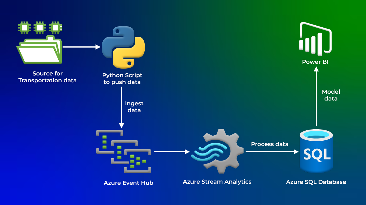 The Project aims to analyse streaming transportation data across various regions, ethnicities, and transport modes. Need to find the process of creating a Python script to read data from a CSV file, send it to an event hub, and transform it into insights using Power BI. The importance of using SQL databases for stream analytics and members should try processing the data independently before watching the solution.