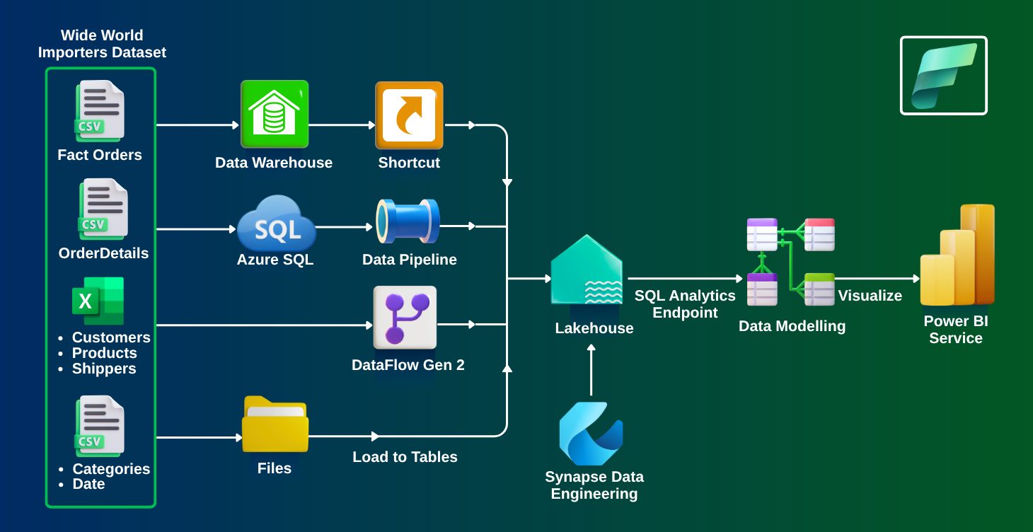 In this project, you’ll design and implement a complete data pipeline using Microsoft Fabric. You will explore data ingestion, transformation, and storage using Dataflow Gen2 and Apache Spark. By creating an automated pipeline, you’ll gain hands-on experience in managing data workflows, integrating real-time analytics, and ensuring seamless data flow across multiple environments. This project will help you develop practical skills to build scalable and efficient data pipelines, empowering you for real-world data engineering roles.