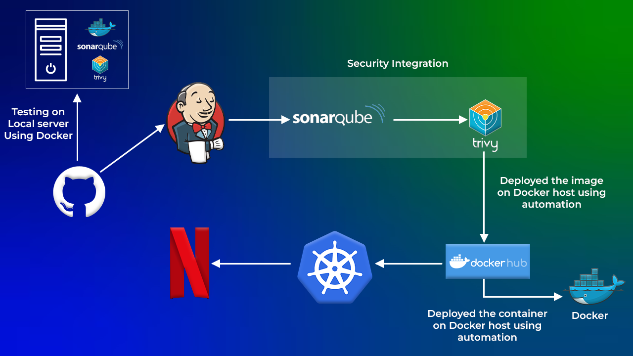 This project involves deploying a Netflix clone application on a Kubernetes cluster. The Netflix clone is a microservices-based application that includes various components like user authentication, content streaming, and a recommendation engine. Each component is containerized and deployed as a separate service in the Kubernetes cluster. The project includes setting up Kubernetes manifests for deployments, services, and ingress controllers.
