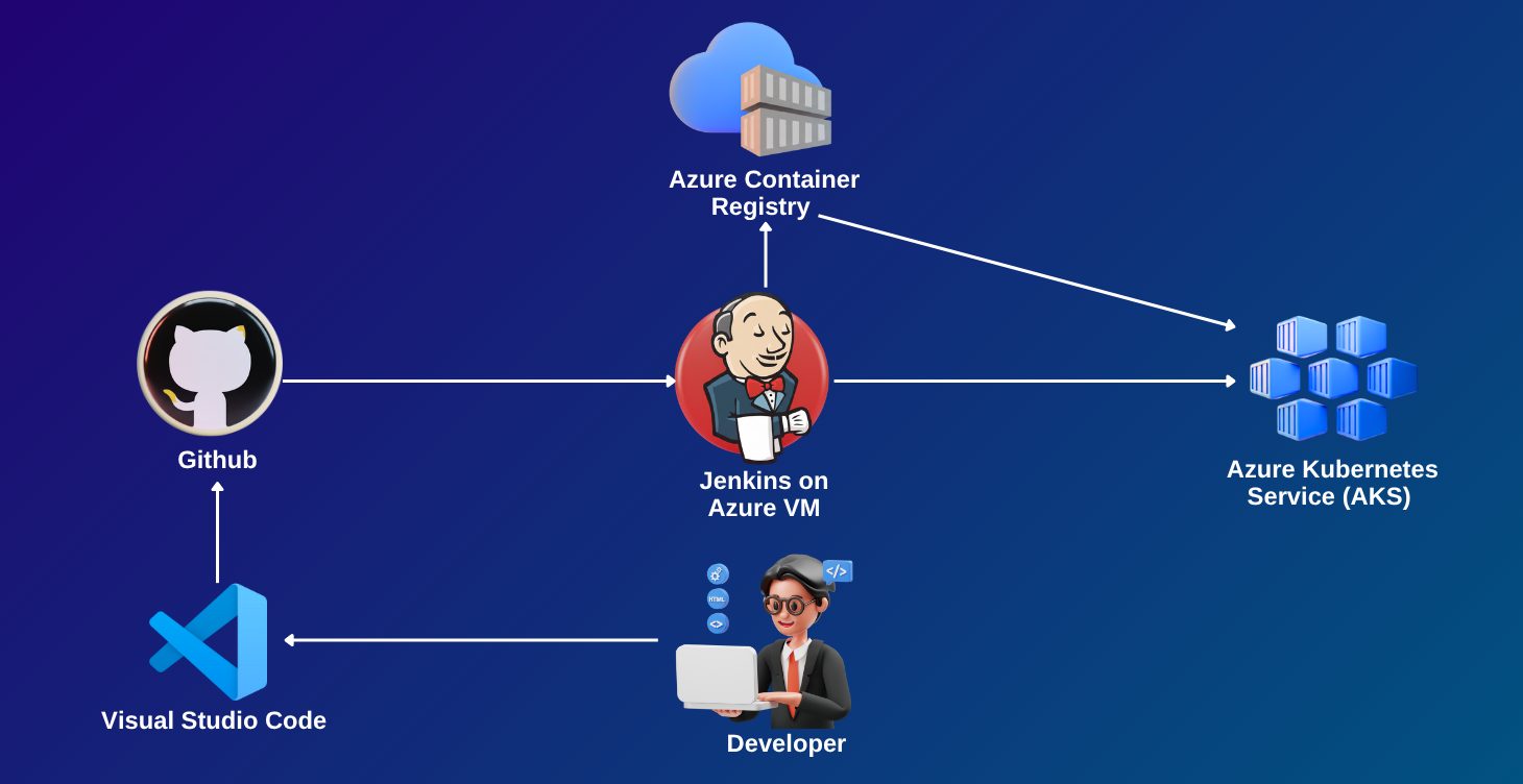 This Project aims to deploy an application on an Azure Kubernetes Service (AKS) cluster using Azure Container Registry (ACR). It involves both manual deployment configuration on AKS and automated CI/CD pipelines orchestrated with Jenkins. This approach ensures efficient Docker image management, seamless deployment, and scalable application orchestration on Azure cloud infrastructure.