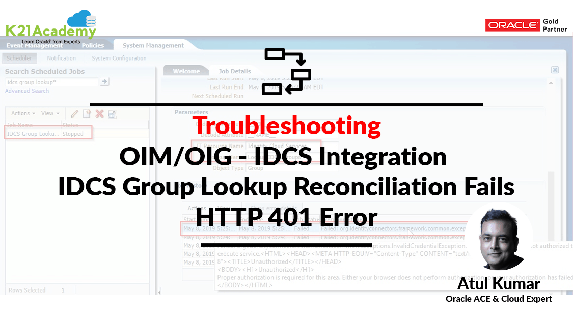 This Post Covers error during IDCS Group Lookup Reconciliation Scheduled Jobs, as a part of Oracle Identity Manager (OIM)/Oracle Identity Governance (OIG), Integration with Oracle Identity Cloud Service (IDCS).